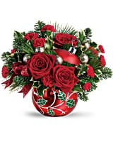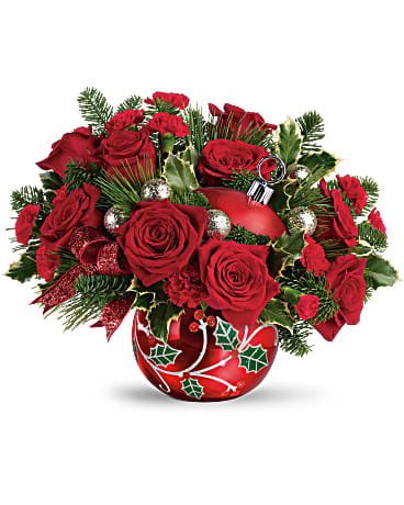 This beautiful in festive red, ceramic holly adorned ornament jar is an exclusive keepsake from Teleflora's Flowers-in-a-Gift collection. Add charm to the holiday with this gorgeous collectible!