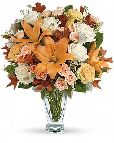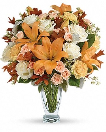 Created for Teleflora's exclusive Flowers-in-a-Gift collection, this shapely glass vase features graceful contours that complement any bouquet.