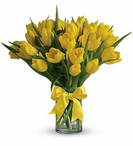 Sunny yellow tulips are a sure sign of spring. Even if the weather is not cooperating, you can be sure the person who receives this bright bouquet will feel the warmth of your message.