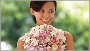 White flowers are as pure and clean as a fresh snowfall. Use white roses for a winter wedding, or calla lilies at any time of year. White daisies are sweet in springtime, while white chrysanthemums and orchids can be used all year round.